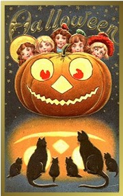 My name is Julie. I’m eleven years old. My uncle is Neal Harrington (Vivien’s boyfriend). I’m so glad my uncle found Vivien. I love her! She taught my friends and I a lot of stuff about protecting ourselves from bad ghosts. Also, we both love Halloween! Vivien showed me her collection of vintage Halloween cards and I picked out my favorite three. When my uncle and Vivien asked me to share on this website, I told them I wanted to show everyone my favorite old-fashioned cards.