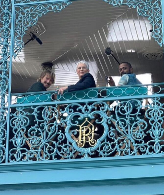 Cast members Jamie Lee Curtis, Owen Wilson, and LaKeith Stanfield work at Haunted Mansion to promote the film!